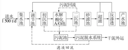 設計處理規模1500m3/d,回用水量800m3/d,回用率50%以上。